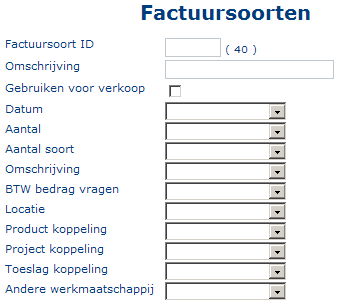 Het aanmaken van een nieuwe factuursoort doet u door te klikken op het Intelly/algemeen/Nieuw_item.gi-icoontje. U krijgt het volgende scherm.