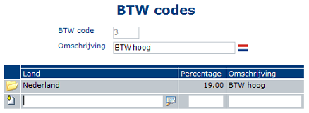 Aan de logistieke kant worden BTW codes aangemaakt, die o.a. gebruikt worden binnen de relatie en bij het boeken van de ToDo. De logistieke BTW codes zijn eenvoudig van opzet (hoog, laag of geen).
