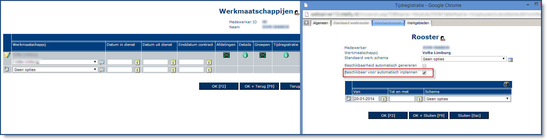 Tijdregistratie > Standaardrooster > "Beschikbaar voor automatisch inplannen"