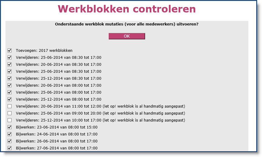 - Werkblokken worden alleen ge-update vanuit de agenda vanaf huidige dag