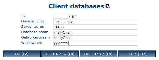 Gebruik hiervoor menu: Stamgegevens / algemeen / intelly clients / databases